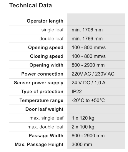 Advanced Technology Door System Sliding Door Operator offers state-of-the-art design and fast & easy installation. This masterpiece comes with strength & intelligence and is user friendly. With is high functionality & options, the system can be adjusted to your particular requirements. Programming can be executed directly on the control unit, therefore there is no need for any additional devices.