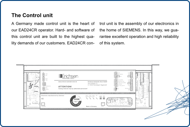 The EAD24CR operator system is manufactured in accordance with the relevant standards.