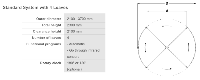 The operator systems EAD53 and EAD54 are two versions by Erichsen revolving doors, with 3 or 4 wings that are available depending on size and use as manual or automatic execution. The 4-bladed revolving door enables a wide passage. The 3-bladed revolving door is the preferred execution in relation to the architectural point of view.