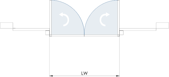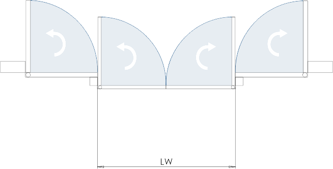 Durch das Aufschieben der ausgeschwenkten Schiebetürflügel wird die Durchgangsbreite
